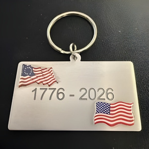1” x 2” stainless steel Dog Tag made in the USA to celebrate the 250th Birthday of the USA. One side indicates the years of the USA and the other side indicates who the President of the United States is during this historic ocassion. Attaches to any dog collar or if you purchase our Patriotic Dog Collar you can get it for free!